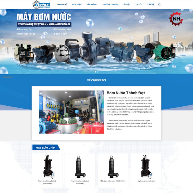 • Banner Sản Phẩm Ấn Tượng: Banner lớn giới thiệu các dòng máy bơm Pentax, máy bơm giếng Nhật, bơm tăng áp, bơm ly tâm… Giúp khách hàng nhận diện sản phẩm ngay lập tức.