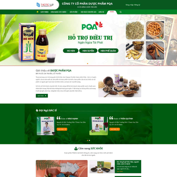 Website Bán Thuốc Nam thuộc danh mục Website Bán Hàng – Website Sức Khỏe. Giao diện được thiết kế theo phong cách bán hàng dược liệu và thuốc nam, tập trung hiển thị banner lớn giới thiệu sản phẩm ở đầu trang, khu vực giới thiệu thương hiệu, đội ngũ bác sĩ và các khối nội dung cẩm nang sức khỏe. Bố cục nội dung được sắp xếp rõ ràng từ trên xuống dưới, kết hợp các khu vực sản phẩm nổi bật, bài thuốc hay và tin tức – sự kiện, giúp khách hàng dễ dàng tìm hiểu và đặt mua sản phẩm.