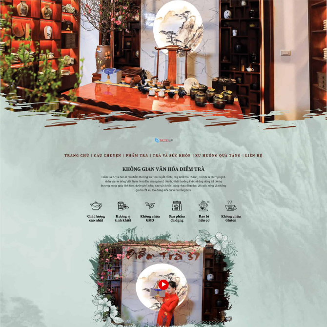 • Khối video trải nghiệm: Hiển thị video giới thiệu không gian và quy trình pha trà.