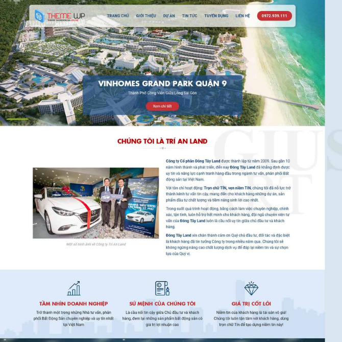 Với bố cục rõ ràng, tập trung xây dựng thương hiệu và giới thiệu dự án, Website Bất Động Sản 20 phù hợp cho cá nhân, doanh nghiệp kinh doanh bất động sản cần một giao diện chuyên nghiệp để quảng bá dự án và phát triển hình ảnh doanh nghiệp.