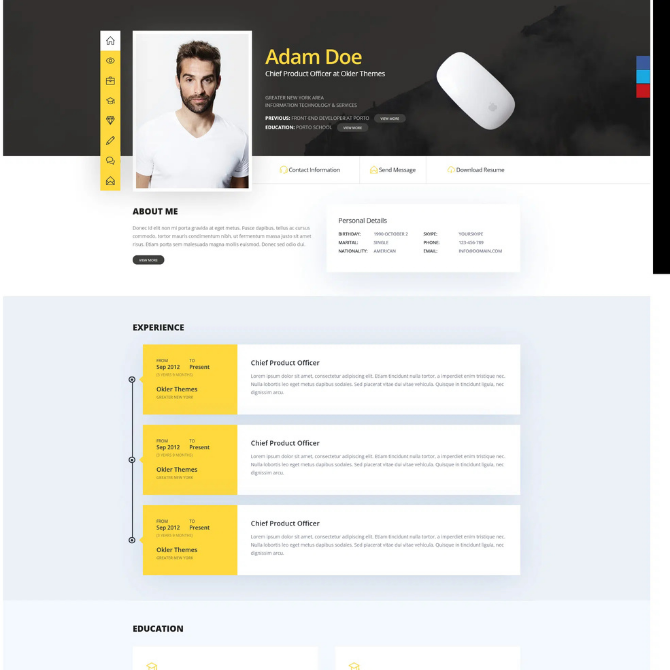 • Phần giới thiệu và thông tin chi tiết. Trình bày nội dung giới thiệu bản thân, thông tin liên hệ và hồ sơ cá nhân rõ ràng.