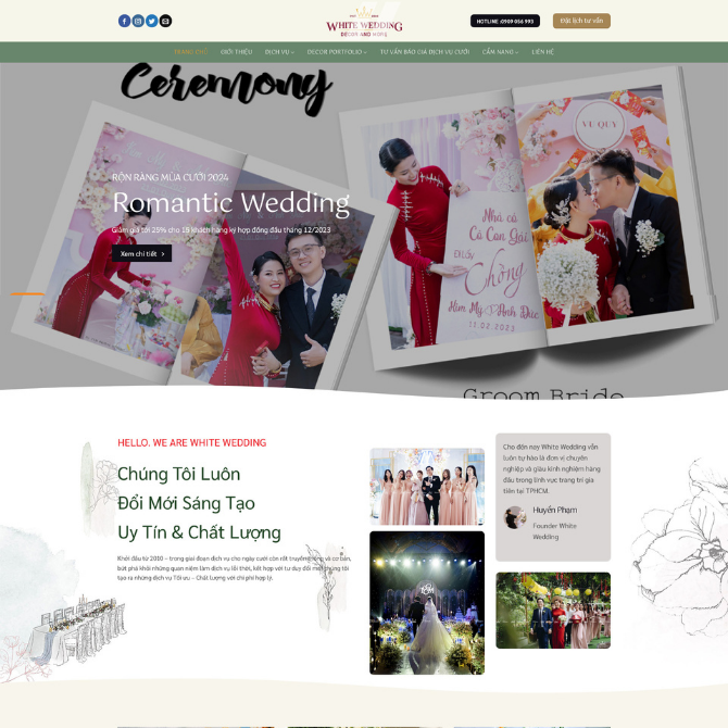 Với Website Dịch Vụ Cưới Hỏi. Các đơn vị cung cấp dịch vụ cưới dễ dàng sở hữu một Website Dịch Vụ hiện đại, tập trung vào trưng bày dự án, giới thiệu dịch vụ và gia tăng độ tin cậy khi tiếp cận khách hàng chuẩn bị lễ cưới.