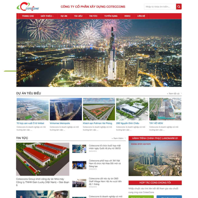 Website Giới Thiệu Công Ty 03 thuộc danh mục Website Công Ty. Giao diện được thiết kế theo phong cách doanh nghiệp xây dựng – tập đoàn chuyên nghiệp, sử dụng hình ảnh dự án thực tế nổi bật cùng bố cục nội dung rõ ràng. Trang chủ tập trung giới thiệu dự án, tin tức và lĩnh vực hoạt động giúp nâng cao uy tín thương hiệu.