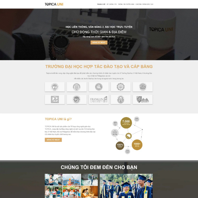 • Hệ thống đối tác đào tạo uy tín: Trình bày các trường đại học, đơn vị hợp tác đào tạo và cấp bằng.