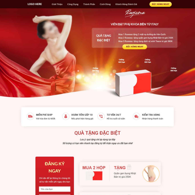 Với bố cục tập trung bán hàng và kêu gọi hành động rõ ràng. Website Landing Page Dịch Vụ Phụ Nữ phù hợp cho cá nhân và doanh nghiệp cung cấp sản phẩm hoặc dịch vụ dành cho phái nữ cần một giao diện landing page chuyên nghiệp để triển khai chiến dịch quảng cáo và bán hàng.