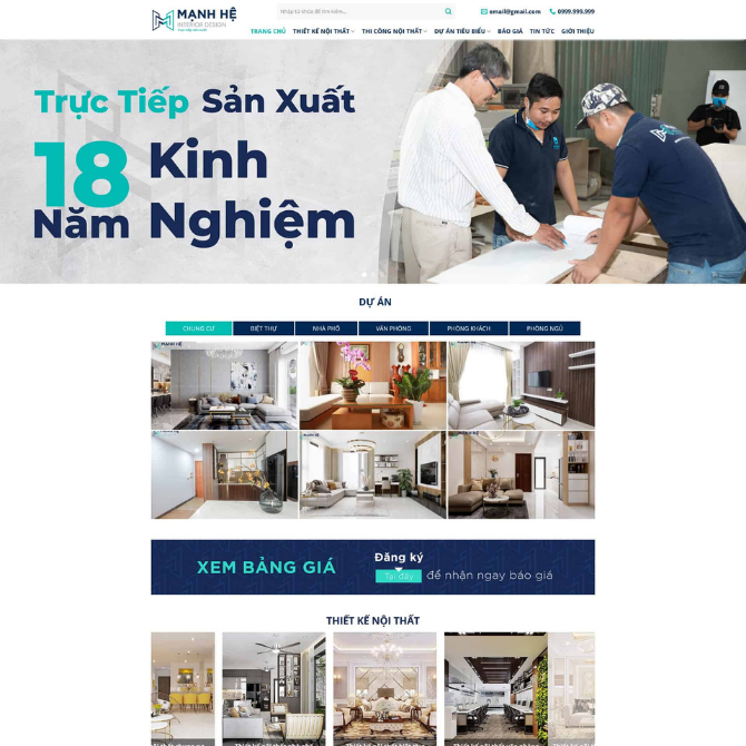 • Danh mục thi công nội thất: Trình bày các dự án thi công theo nhóm.