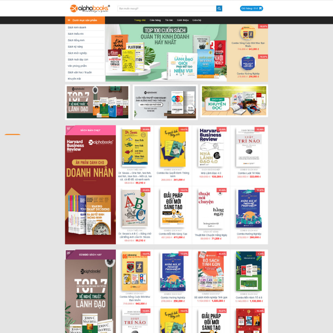 • Danh mục sách rõ ràng: Phân chia theo từng thể loại như sách kinh doanh, kỹ năng, thiếu nhi giúp dễ dàng điều hướng.