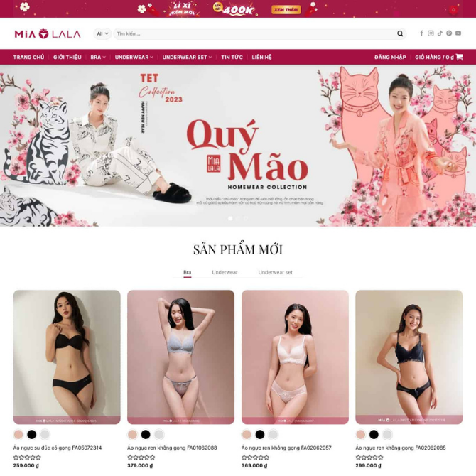 • Banner lớn bộ sưu tập Tết Quý Mão: Trình bày hình ảnh người mẫu mặc đồ ngủ, nội y theo concept xuân, tạo ấn tượng mạnh ngay khi truy cập.