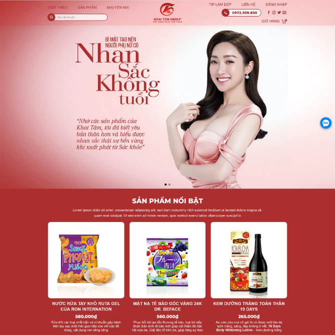 Website Spa 13 thuộc danh mục Website Spa. Được thiết kế dành cho spa, thẩm mỹ viện và đơn vị kinh doanh mỹ phẩm làm đẹp với bố cục tập trung vào giới thiệu sản phẩm, ưu đãi và xây dựng hình ảnh thương hiệu chuyên nghiệp. Giao diện sử dụng tone màu đỏ – hồng nổi bật, kết hợp banner lớn truyền tải thông điệp trẻ hóa làn da và chăm sóc sắc đẹp. Nội dung trình bày mạch lạc, dẫn dắt khách hàng khám phá sản phẩm, dịch vụ và tăng tỷ lệ chuyển đổi mua hàng trực tuyến. Website Spa 13 giúp thương hiệu dễ dàng tiếp cận khách hàng, nâng cao độ tin cậy và hỗ trợ kinh doanh hiệu quả.