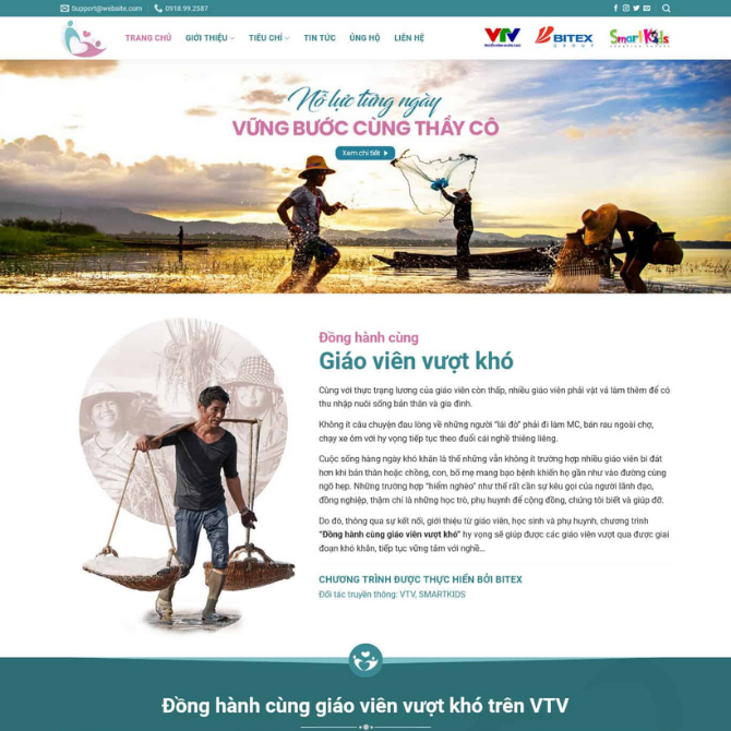 Website Sự Kiện Du Lịch thuộc danh mục Website Du Lịch. Được thiết kế dành cho chương trình xã hội – sự kiện đồng hành cùng giáo viên vượt khó với bố cục cảm xúc, tập trung kể câu chuyện, video truyền hình, bài viết tin tức và hoạt động hỗ trợ cộng đồng. Giao diện nổi bật hình ảnh đời thực, thông điệp nhân văn và nội dung truyền cảm hứng giúp người xem dễ dàng theo dõi chương trình và tham gia chia sẻ, ủng hộ.