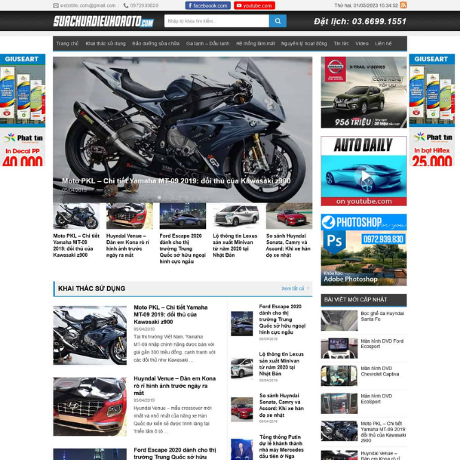 • Bố cục trang tin chuyên ngành ô tô – xe máy. Phù hợp cho website tin tức xe, kỹ thuật, bảo dưỡng và đánh giá phương tiện.
